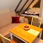 Renoviranje apartmana je u potpunosti inspirisano prirodnim okruženjem Kopaonika, pa je tako i kompletan nameštaj nov i izrađen po meri od prirodnog drveta.